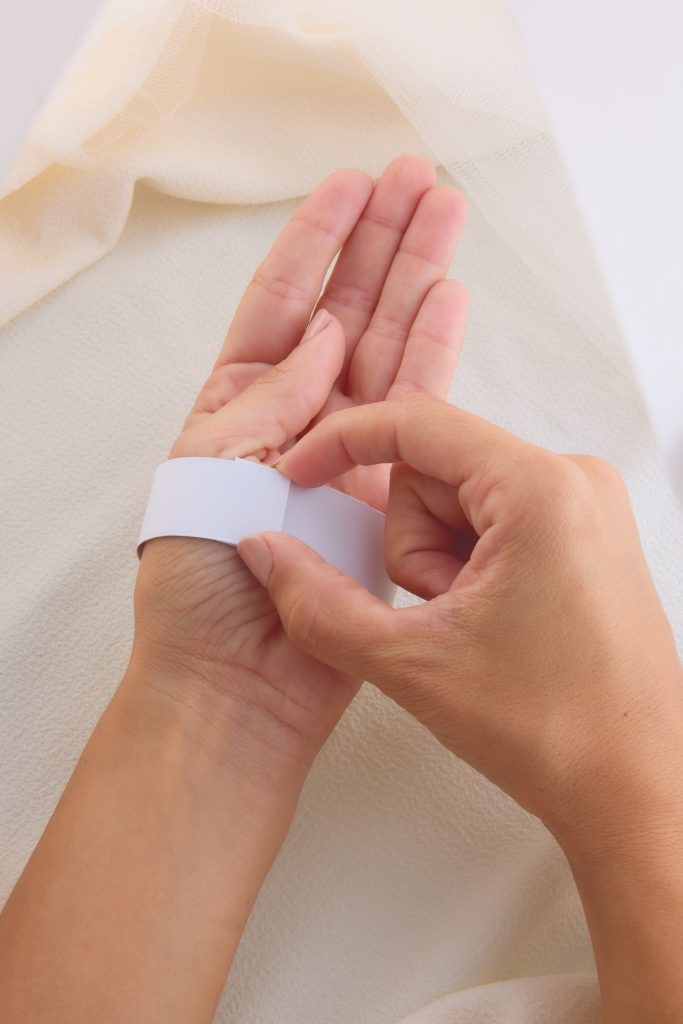 2. Con la mano cerrada, envolvé el papel alrededor de la muñeca,
