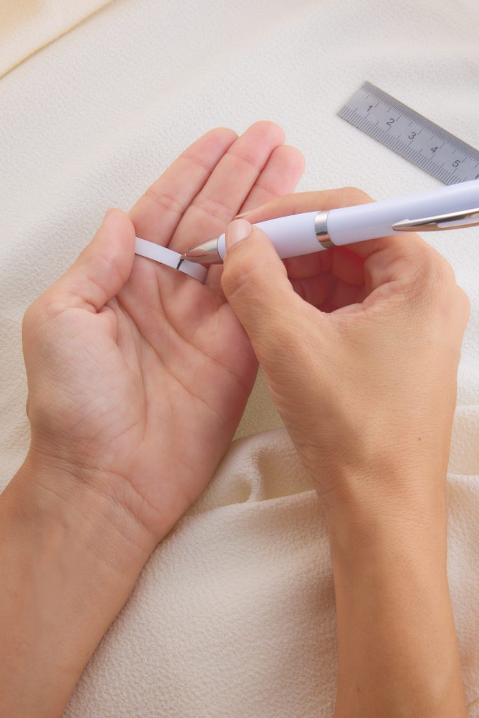 2. Envolvé el papel alrededor de tu dedo y marcá con la lapicera el punto donde se unen ambos extremos. Asegurate que esté ajustado.