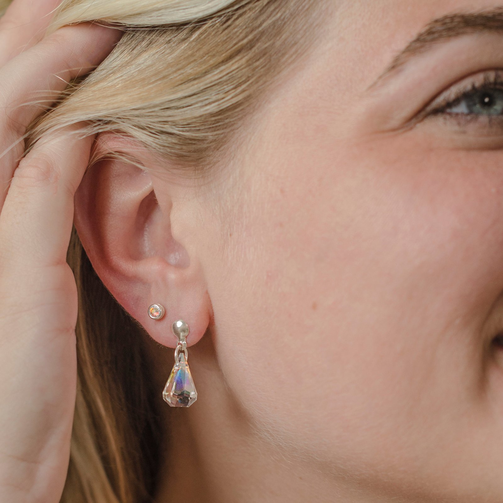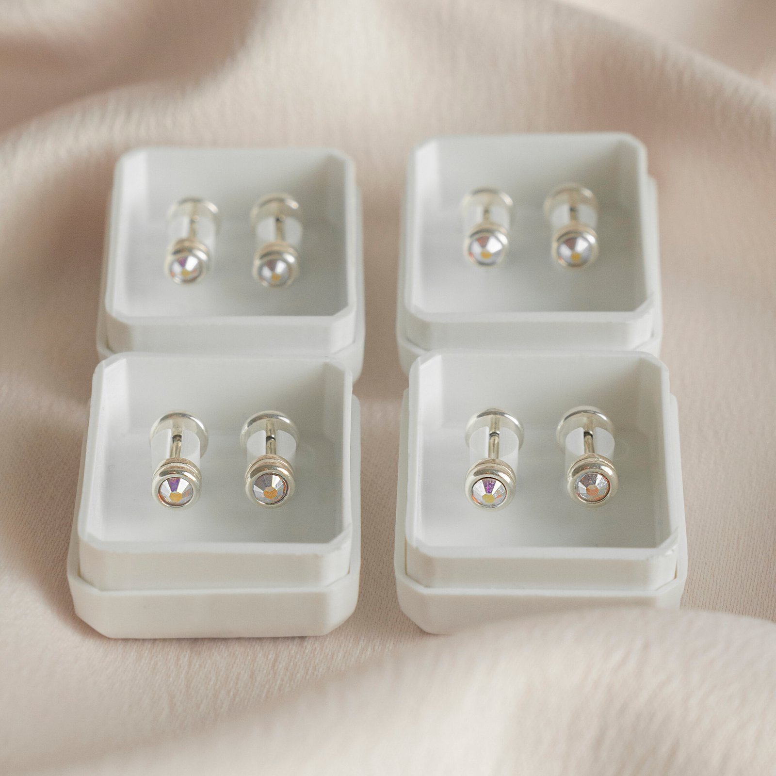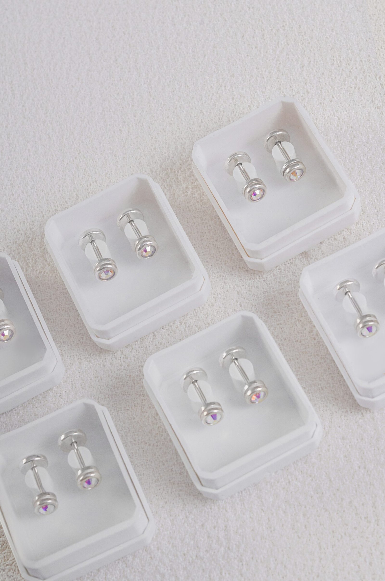 Abridores de plata 925 con cristal aurora boreal, ideales tanto para niñas como para multiperforaciones.