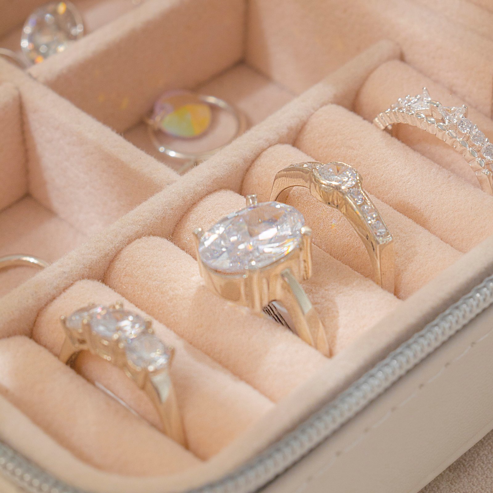 Sabemos lo importante que es cuidar tus joyas favoritas. Por eso, te recomendamos guardarlas siempre en tu alhajero cuando no las estés luciendo. Así conservarán su brillo y estarán siempre listas para acompañarte.