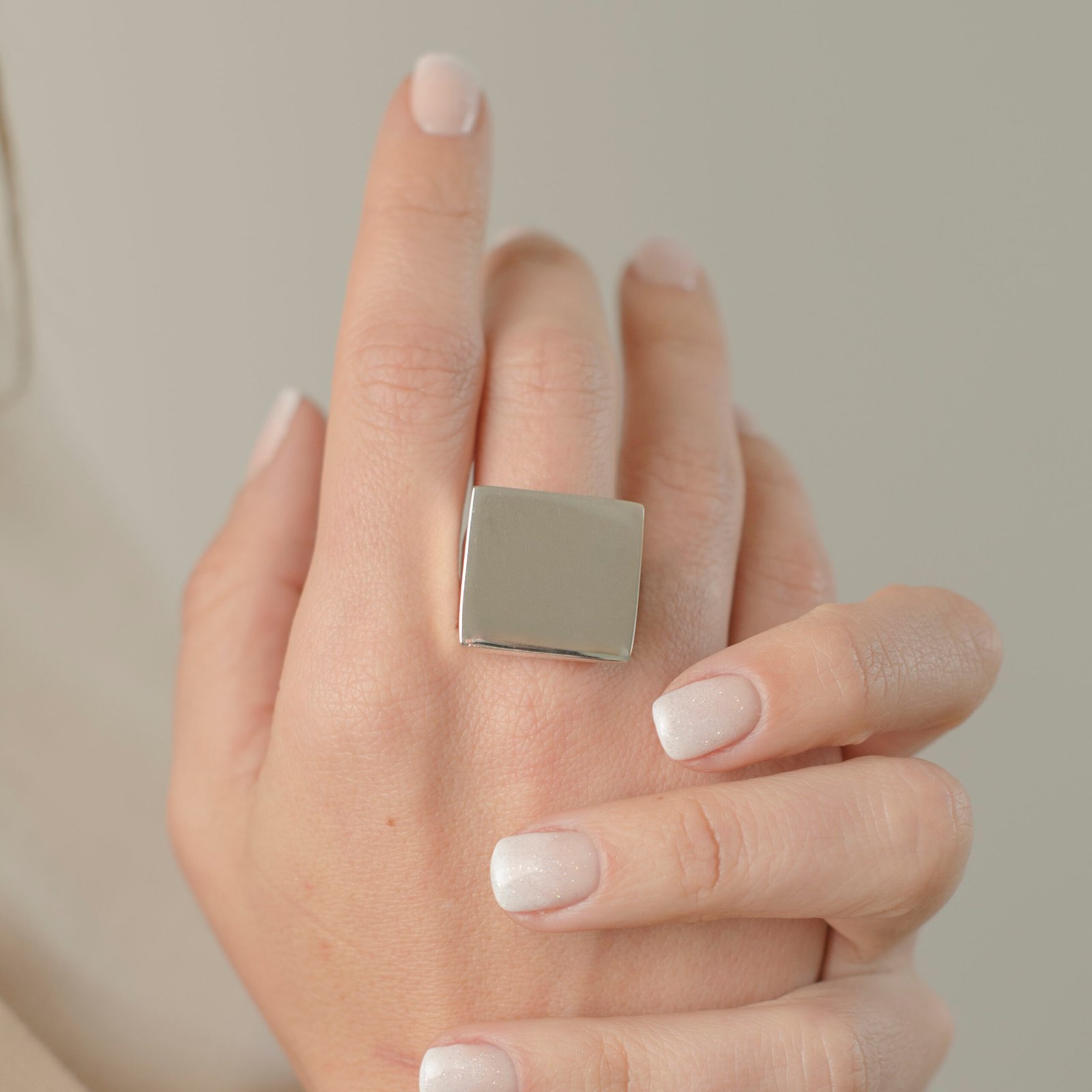 Anillo de Plata 925 que combina fuerza, elegancia y diseño contemporáneo. Su estructura cuadrada y maciza lo convierte en una joya imponente, ideal para quienes buscan destacar con una pieza única y con personalidad. Cada detalle fue cuidadosamente trabajado para lograr una joya equilibrada entre modernidad y comodidad.