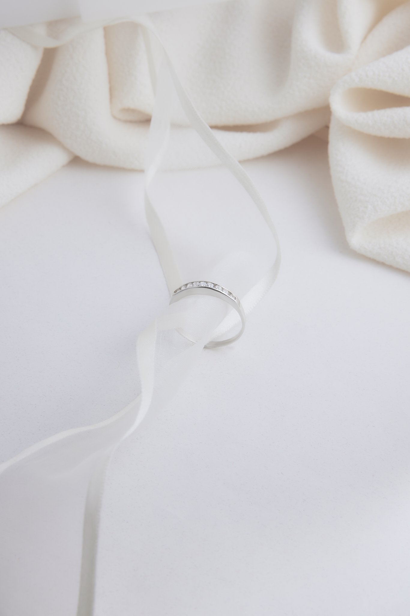 Cada cubic está cuidadosamente engarzada bajo una galería de doble agarre, garantizando resistencia y durabilidad sin perder delicadeza.
